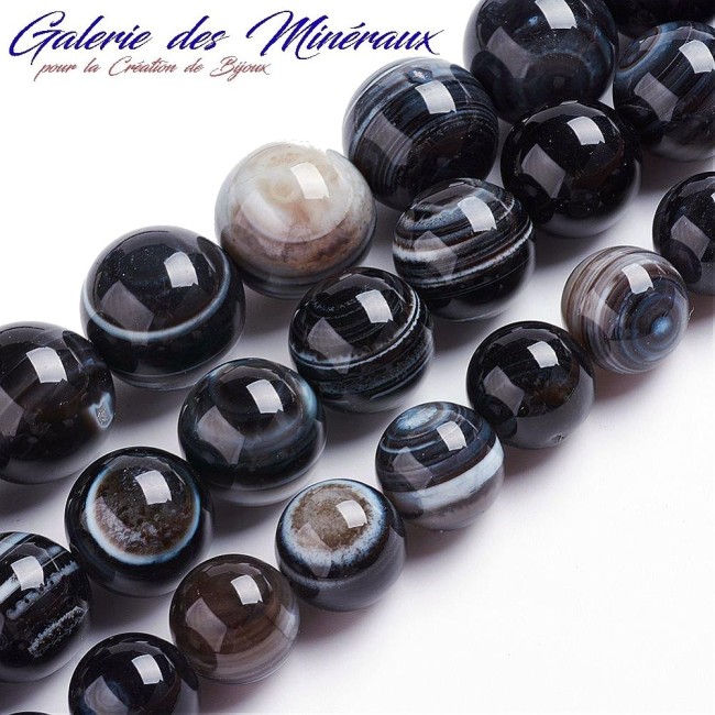 AGATE NOIRE 16mm grosses perles rondes gemme pierre naturelle : création bijoux, loisirs créatifs & DIY
