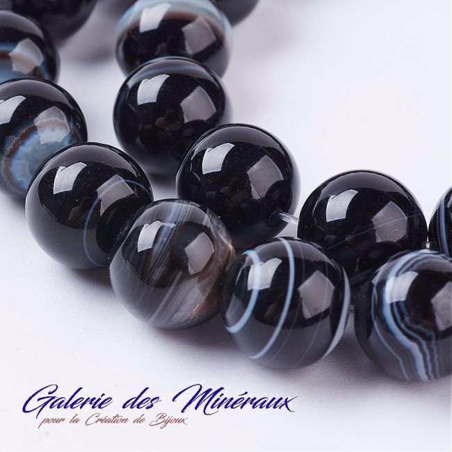 AGATE NOIRE 12mm grosses perles rondes gemme pierre naturelle : création bijoux, loisirs créatifs & DIY