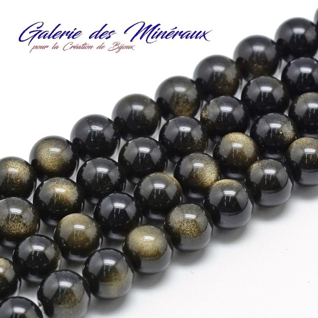OBSIDIENNE DOREE 12mm grosses perles rondes gemme pierre naturelle : création bijoux, loisirs créatifs & DIY
