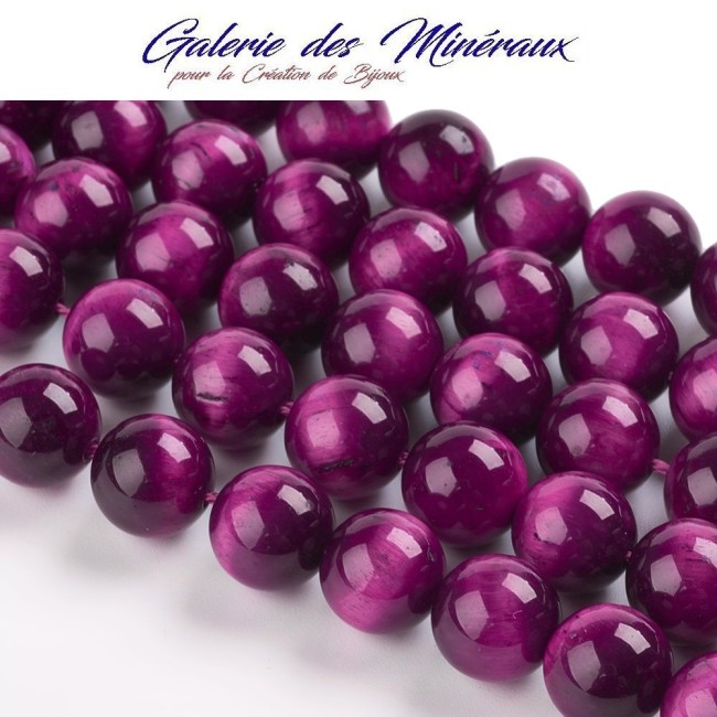 OEIL DE TIGRE Fuchsia 12mm grosses perles rondes gemme pierre naturelle : création bijoux, loisirs créatifs & DIY