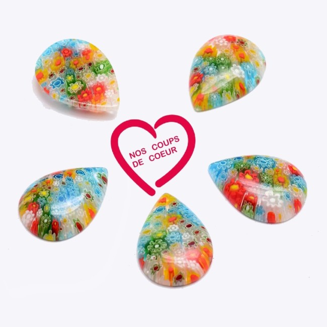 Cabochon MURANO MilleFiori 10x8mm goutte en verre décoré : création bijoux, loisirs créatifs & DIY