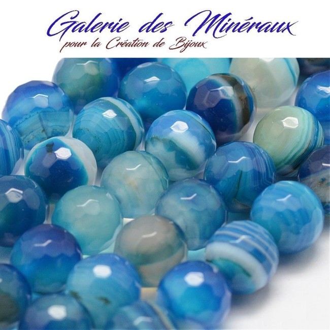 AGATE BLEUE 8mm perles rondes à Facettes gemme pierre naturelle : création bijoux, loisirs créatifs & DIY