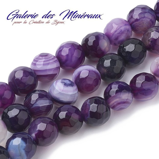 AGATE VIOLINE 12mm grosses perles rondes à Facettes gemme pierre naturelle : création bijoux, loisirs créatifs & DIY